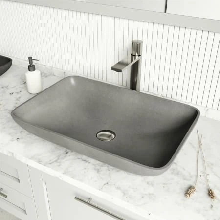 Inspired by the durability and indestructibility of New York City’s streets, VIGO delivers an expertly crafted bathroom vessel sink. Handcrafted from VIGO’s proprietary Concreto Stone, a blend of concrete and naturally sustainable materials makes it more durable and longer-lasting than traditional sink materials. Its neutral gray color and rectangular shape complement any bathroom vessel faucet, wall-mount faucet, or countertop. Innovative technology features ensure that it is a lasting fixture in your home. The Concreto Stone Collection is ideal for traditional, transitional, and modern bathrooms.