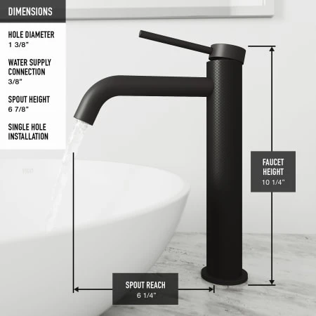 - Spout Reach: 6-1/4″ (faucet base to spout outlet)