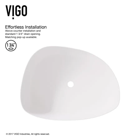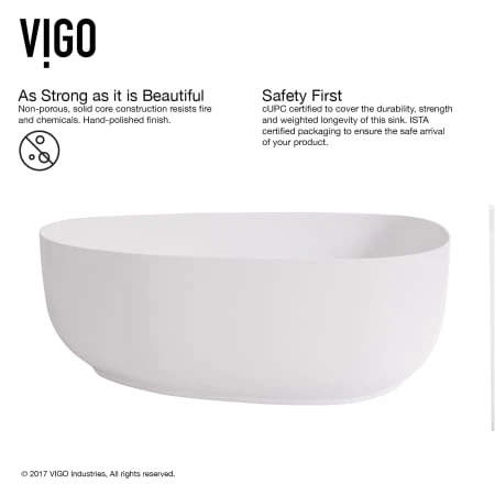 - Constructed of VIGO’s™ matte stone resin, a solid core material similar in composition to Corian maintaining non-porous, solid surface qualities